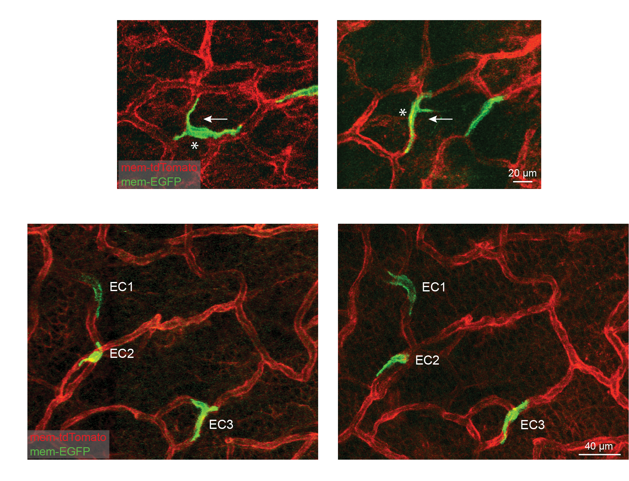 (Bottom) Tracking of single endothelial cells (numbered) in adult mice imaged longitudinally over 1 month.